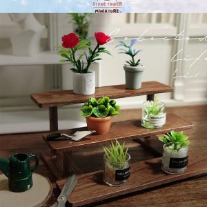 Dollhouse Miniature Wooden Display Shelf: Tiered Flower Stand