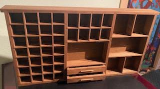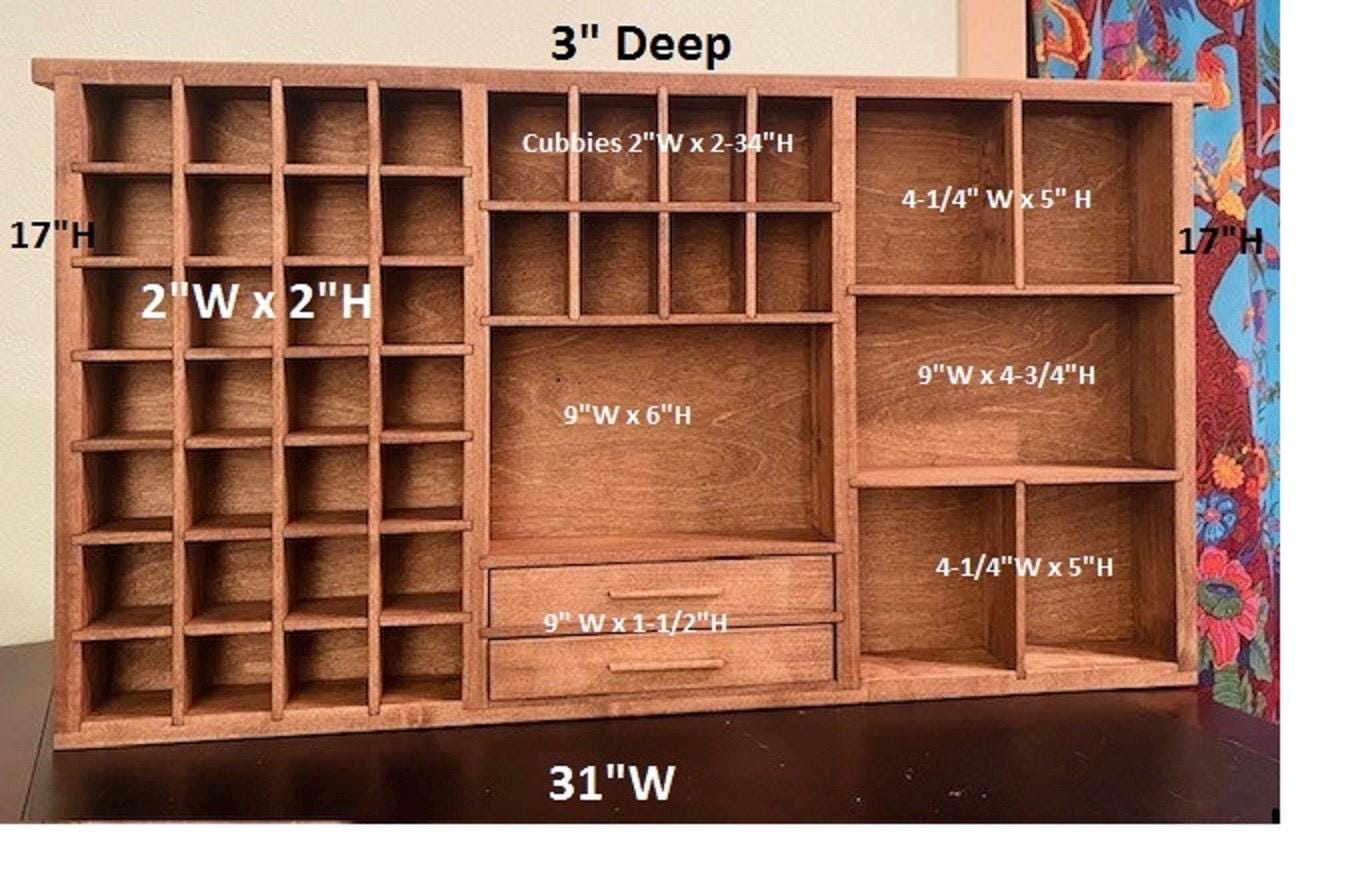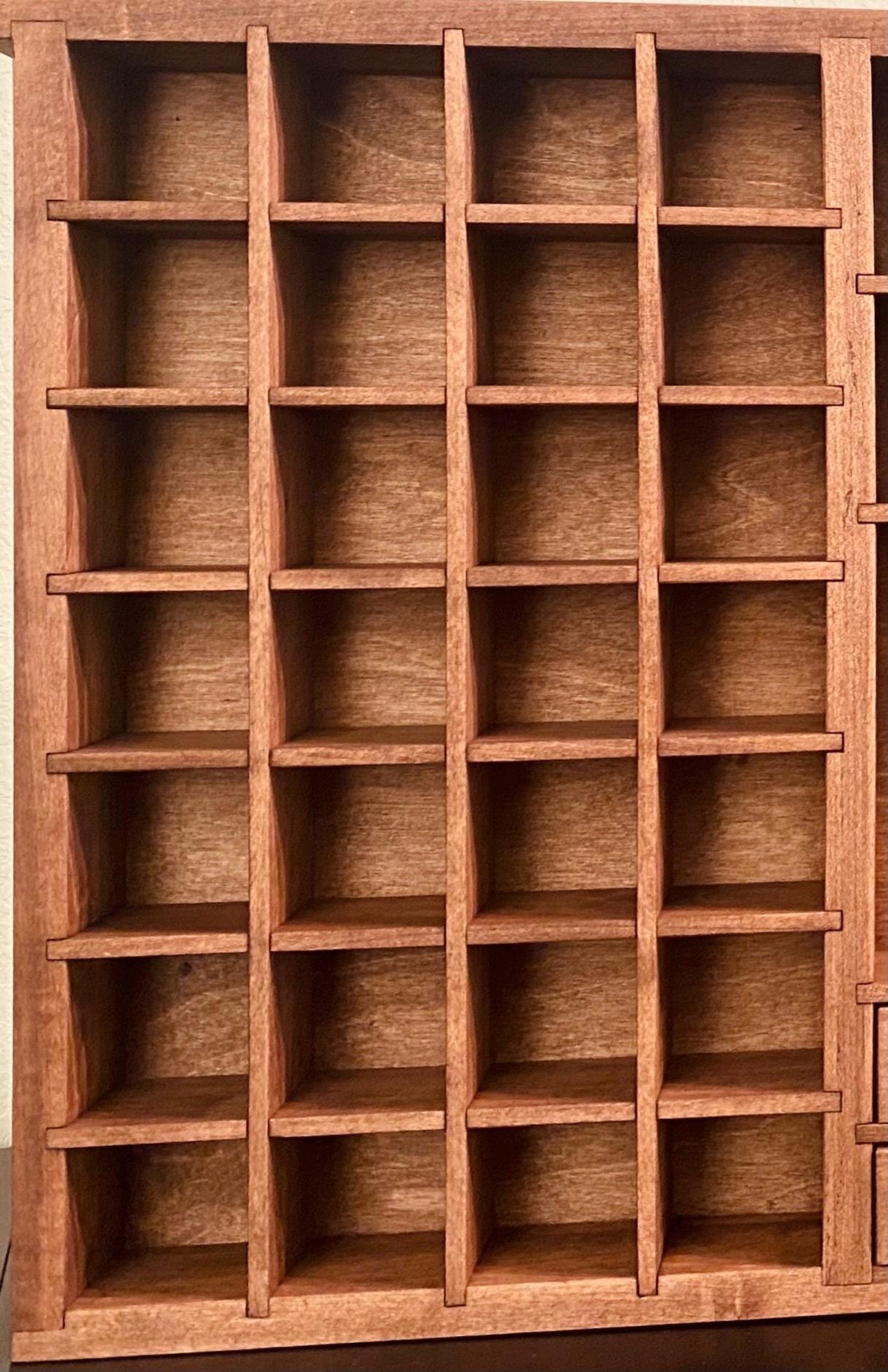 Handmade Mini Wooden Printer’s Tray: Crystal & Collectibles Shelf