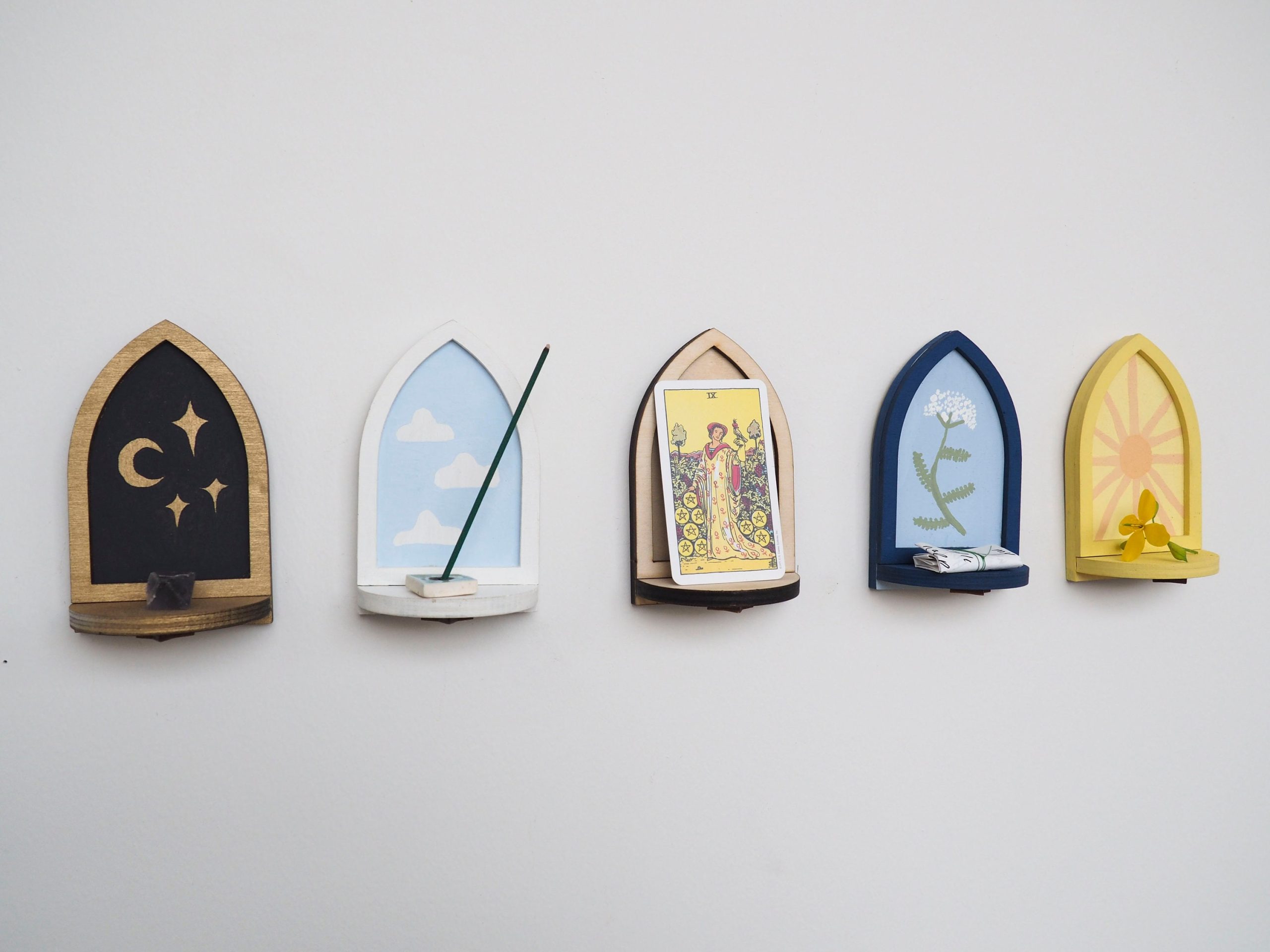 Hi there! My name is Nicole- and this is the CREATIVITY altar that I designed, cut from wood, and left unfinished for your wonderful future painting! It can be used as a working place for a spell, or as a devotional shrine for a certain deity, spirit, or saint. It is made from birch plywood and is ready to accept your creative marks with acrylic paint, paper mâché, or anything you can dream up! Create the perfect altar for yourself with this wooden base.