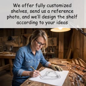 This unique wall shelf is made from solid natural wood, selected for its beautiful grain patterns, knots, and natural color variations. The wood is carefully treated, sanded smooth, and hand-finished to preserve its organic character while ensuring long-lasting durability. Small knots, grain waves, and natural marks are part of the wood’s authentic beauty.